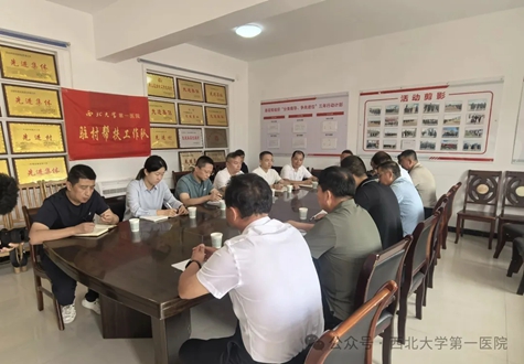 7月23日,我院党委副书记潘君宇带队送新选派第一书记和工作队员赴榆林市横山区波罗镇朱家沟村报到。次日,在朱家沟村委会召开2025年定点帮扶工作推进会暨驻村干部轮换座谈会。医院相关部门负责人、村“两委会”干部、乡镇干部、驻村工作队全体干部、村党员干部、群众代表参加会议。