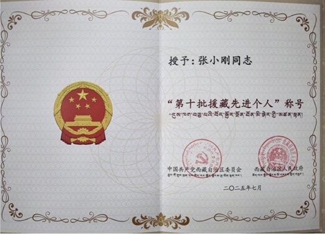 张小刚被评为西藏自治区第十批援藏先进个人