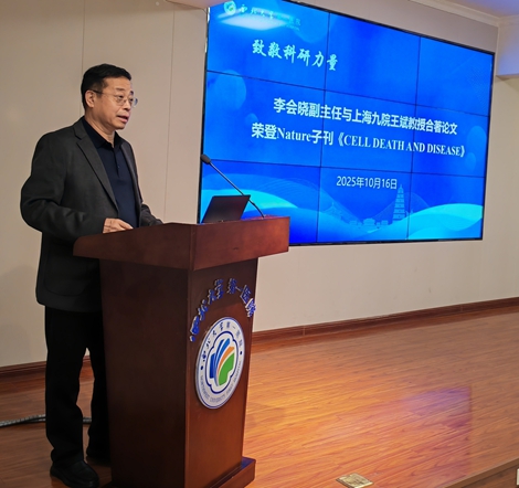 10月16日下午,我院召开专题会议,庆祝骨二科副主任李会晓与上海交通大学附属第九人民医院王斌教授团队合作的研究成果在国际顶级学术期刊Nature子刊Cell Death & Disease(影响因子9.6)上成功发表。院领导班子、中层干部130余人参会,会议由孟勇副院长主持。