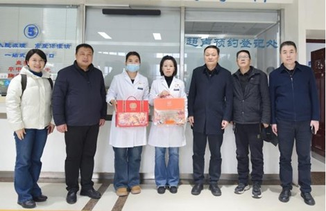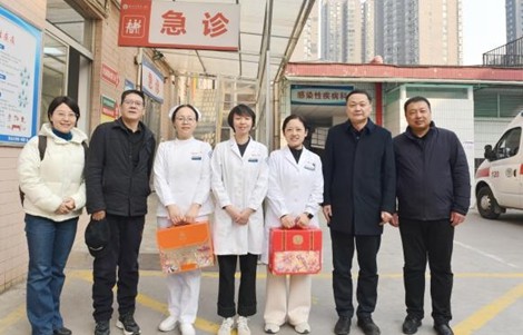 在听取医院相关工作汇报,了解到医院在医疗质量、服务优化、医保管理等方面取得的成效后,陈富林给予了充分肯定,并代表学校送上节日慰问品。他表示,广大医护人员常年奋战在救死扶伤第一线,是守护人民健康的忠诚卫士,用实际行动践行了崇高的职业精神,为学校和陕西省的卫生健康事业发展作出了重要贡献。