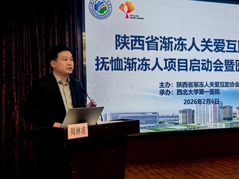 2月6日下午,由陕西省渐冻人关爱互助协会主办、西北大学第一医院承办的“抚恤渐冻人项目启动会暨医疗培训会”圆满落幕。与会人员包括神经疾病领域的权威专家、临床医护工作者、志愿者、患者及家属代表等。会议由西北大学第一医院副院长周林甫主持。