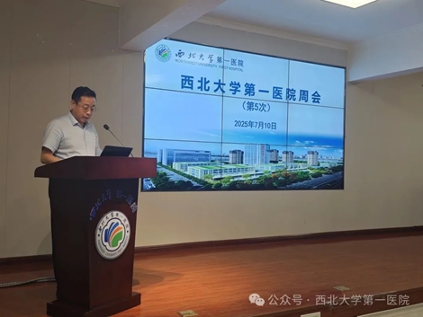 7月10日,西北大学第一医院在院周会上召开了上半年工作复盘会议。此次会议汇聚了院班子成员、职能部门负责人、各临床医技科室负责人及护士长,共同回顾上半年工作成果,展望下半年发展前景。会议由赵钢副院长主持,气氛热烈而严谨。