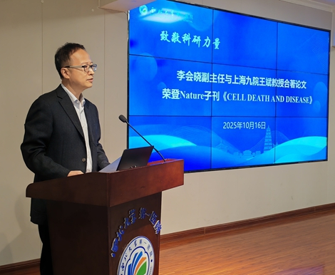 10月16日下午,我院召开专题会议,庆祝骨二科副主任李会晓与上海交通大学附属第九人民医院王斌教授团队合作的研究成果在国际顶级学术期刊Nature子刊Cell Death & Disease(影响因子9.6)上成功发表。院领导班子、中层干部130余人参会,会议由孟勇副院长主持。