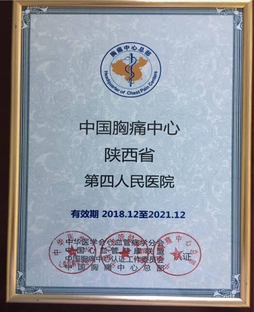 我院成立于2017年5月22日,经过国家级专家验收,顺利通过中国胸痛中心的评审并授牌,是西安市东南郊唯一一家通过认证的国家级胸痛中心。